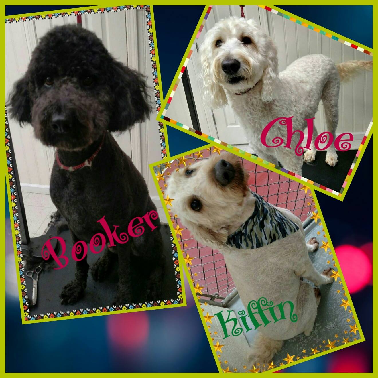 All grooming include a brush out, ears cleaned, nails cut, hair between pads trimmed, anal glands expressed, bathing and high velocity drying. Grooming is very healthy for your pet.